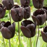 Tulip 'Continental' has striking deep burgundy blooms that are almost black in the shade. It is a Triumph Tulip that features strong stems, uniform habit, and excellent performance in borders, containers, and cut arrangements. Blooms in April.