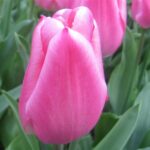 Tulip ‘Christmas Dream’ has bright rosy-pink blooms. It is an early-blooming Triumph Tulip with strong stems, uniform height, and excellent performance in borders, containers, or as cut flowers. Blooms in April.