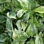 Pothos 'Marble Queen' has elegant green-and-cream marbled leaves. Easy to care for. **Please note: It is not pet-friendly and can be toxic if ingested by cats or dogs.